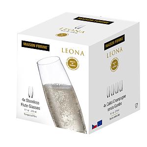 [1223] Leona Cristallin 270 Ml Verre À Champagne Sans Pied Ensemble De 4