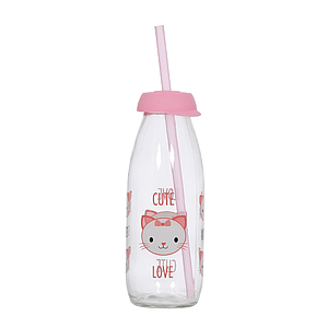 [22041/BOTTLE] 500 Cc Glass Bottle With Straw (Cat) 🚩PROMOTION